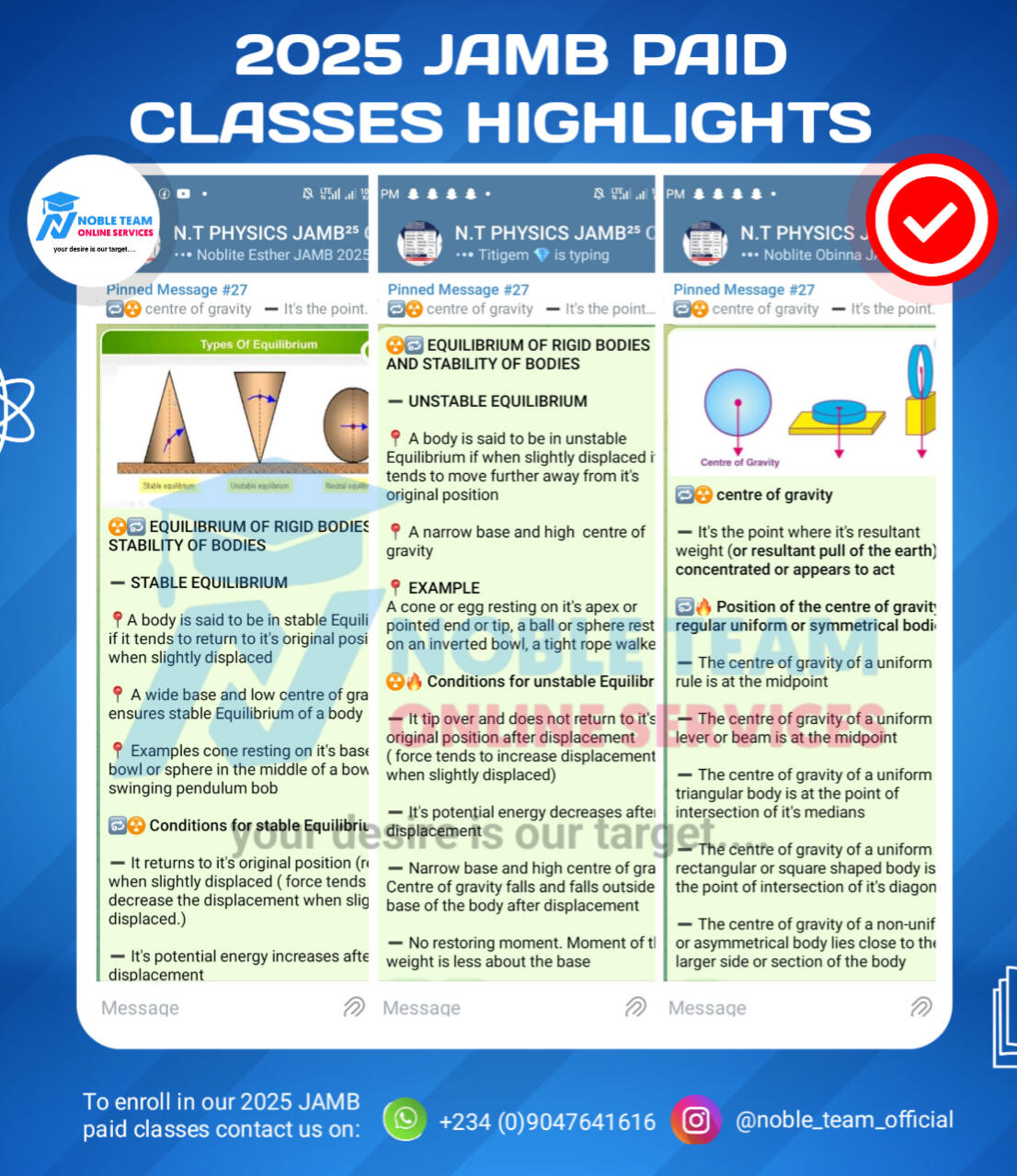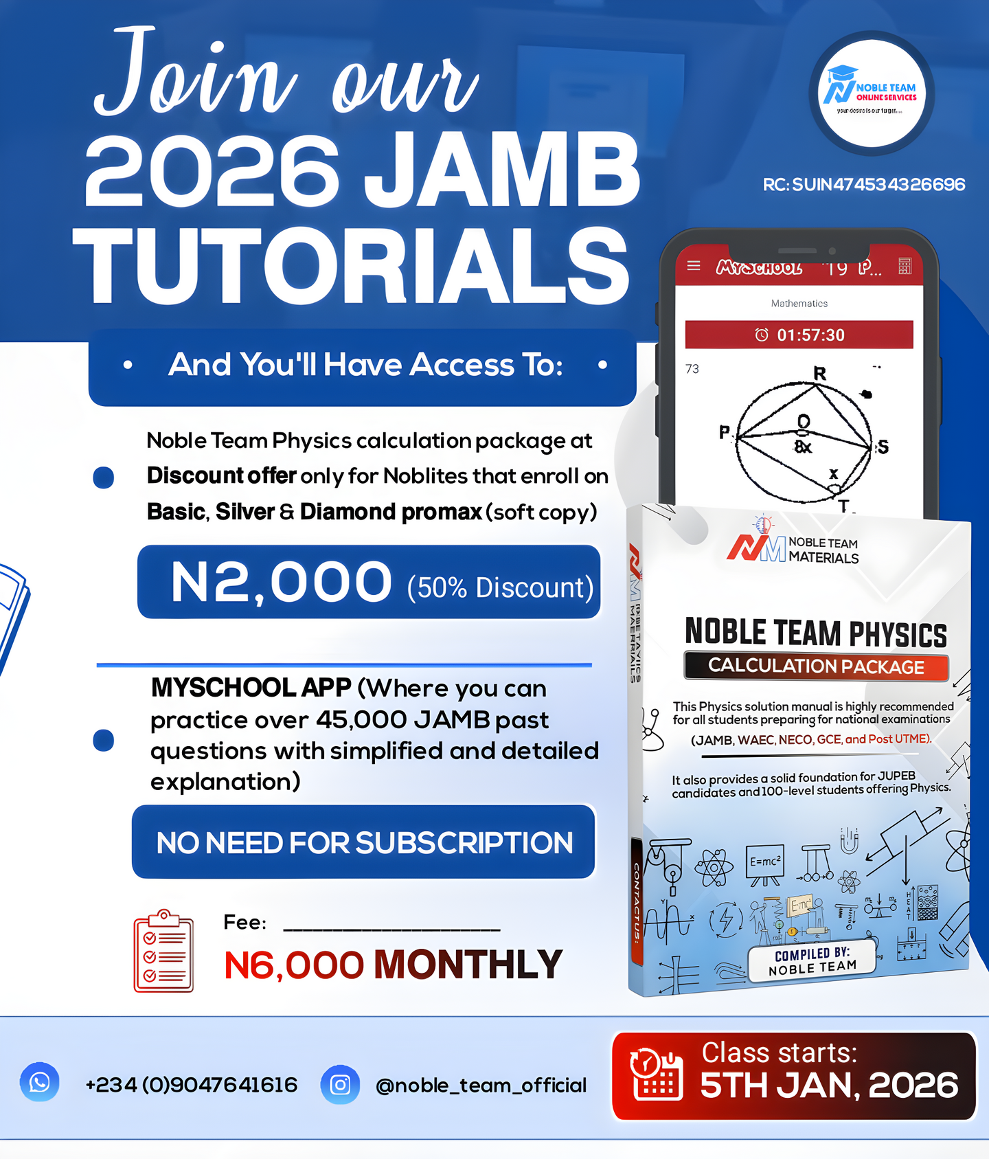 As a registered student of Noble Team 2026 JAMB PAID classes, you are entitled to 50% off on Noble Team physics calculation package. Donât miss this chance to maximize your preparation at half the cost!
