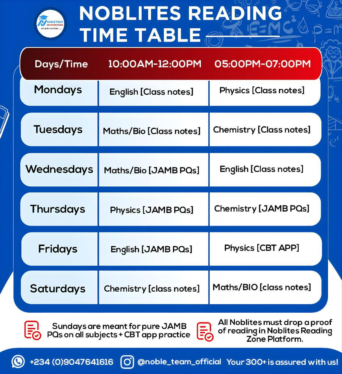 This Noblites Reading Timetable is carefully structured to help you stay consistent, focused, and accountable throughout your study journey.